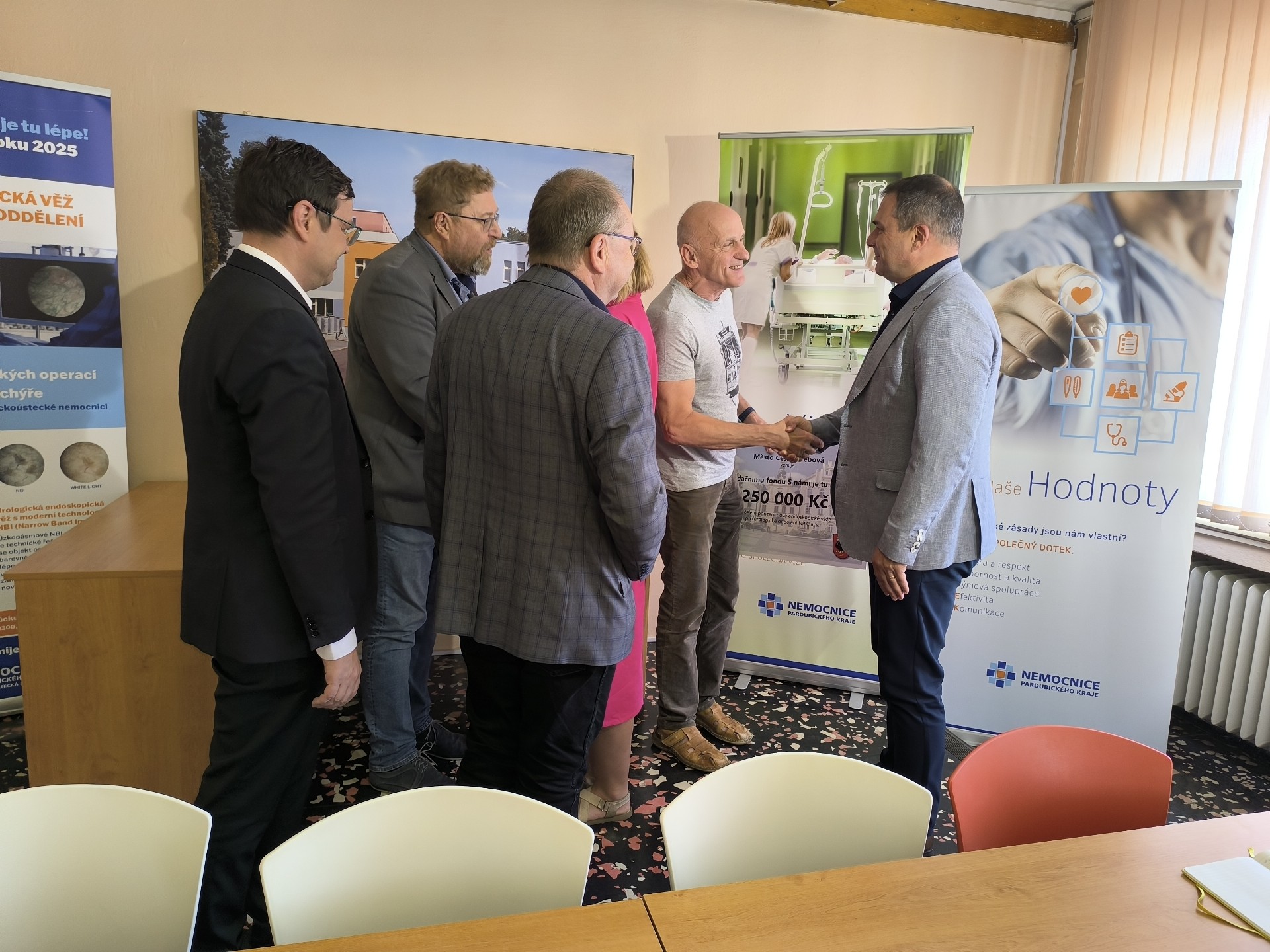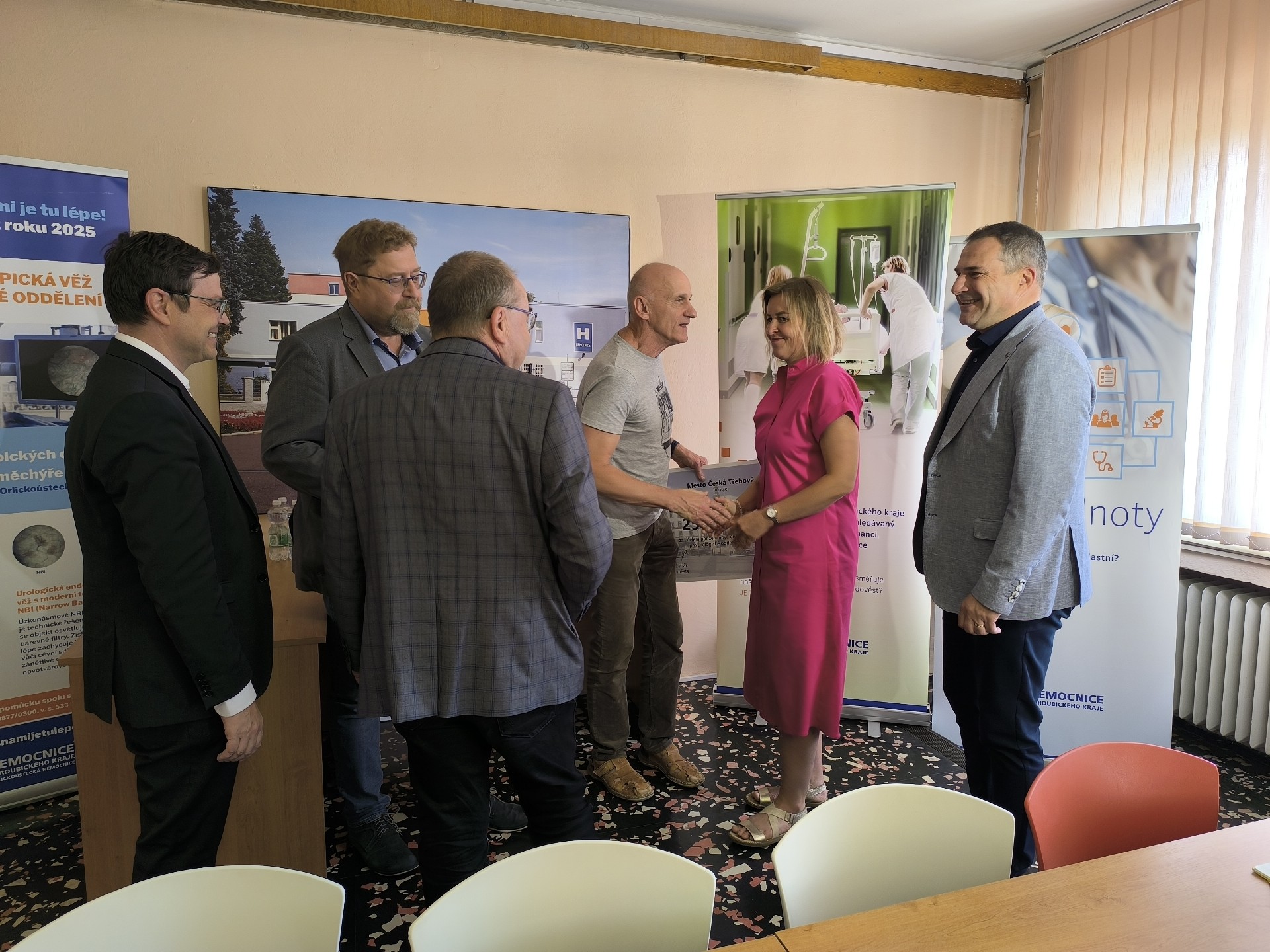 Na fotografii zleva: Jiří Preclík (místostarosta Ústí nad Orlicí), Petr Hájek (starosta Ústí nad Orlicí), Karel Kohoutek (ředitel léčebné péče Orlickoústecké nemocnice), Kvido Štěpánek (předseda správní rady Nadačního fondu S námi je tu lépe!), Petra Válková (1. místostarostka České Třebové), Zdeněk Řehák (starosta České Třebové)