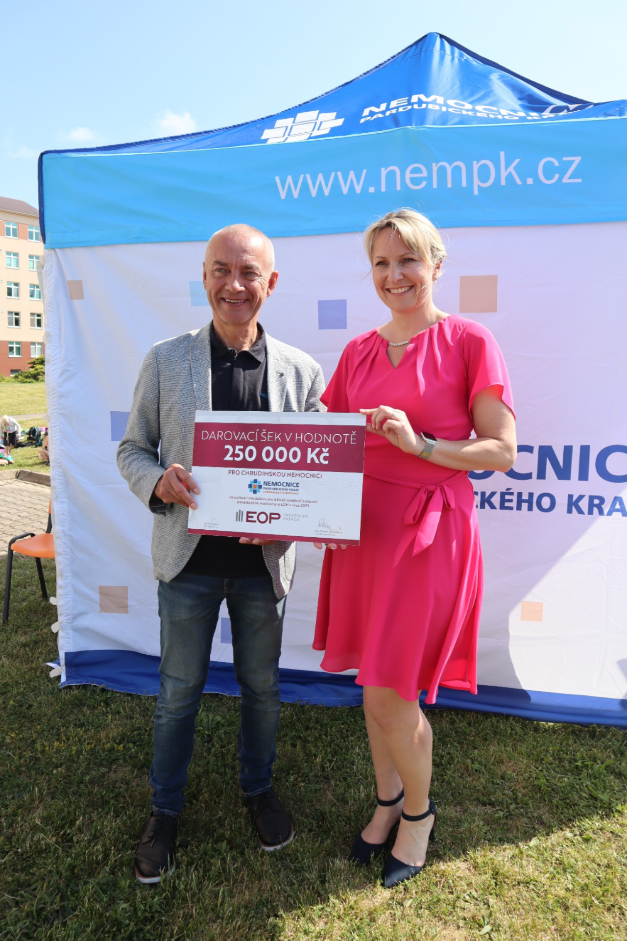 Letošní akce měla i charitativní podtext. Společnosti Elektrárny Opatovice a EOP Distribuce jsou dlouholetými partnery krajských nemocnic, a tak se u příležitosti letošního Dne zdraví rozhodly předat tradiční dar nemocnici. „I letos šlo o šek ve výši 250 tisíc, tentokrát na nákup inkubátoru pro dětské oddělení a antidekubitních matrací pro oddělení LDN. Navazujeme tím na finanční dary v předešlých letech s pomocí pro ty nejzranitelnější skupiny, jimiž jsou děti a senioři,“ upřesnila výkonná ředitelka opatovické elektrárny Romana Zadrobílková.